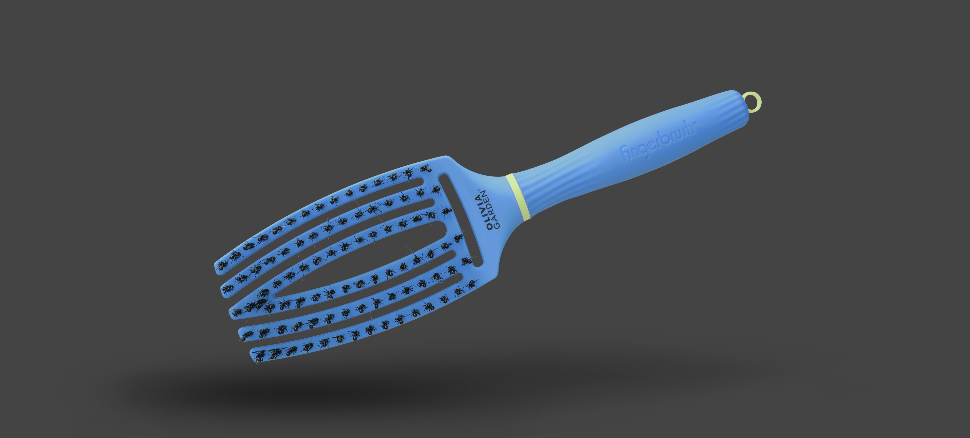 Massage- und Entwirrungsbürste mit einzigartiger, der menschlichen Hand nachempfundenen Form. Sie passt sich aufgrund ihrer Wölbung der natürlichen Kopfform perfekt an.